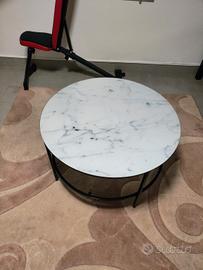 tavolino tondo da sala in vetro effetto marmo