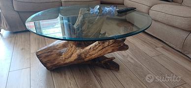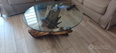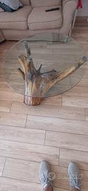Tavolino da salone realizzato con tronco d albero trattato e preparato con vetro di cristallo tondo da 1 cm ...veramente originale da vedere .....pezzo unico ..... ...prezzo da concordare