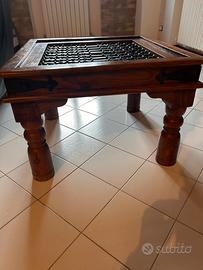 Tavolino da salotto in legno massiccio e ferro battuto.