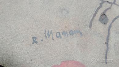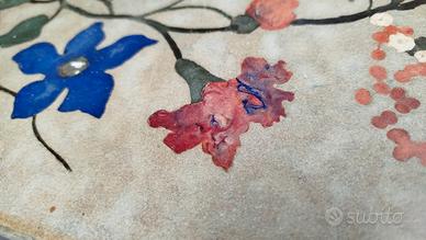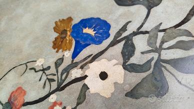 Tavolino da salotto anni 50'/60' base in ottone e legno design attribuibile a Paolo Buffa - piano in marmo dipinto a motivi floreali firmato R. Mariani. Dimensioni 60 x 46 h. cm . Base ottone 60 x 60 cm . Info 349 561 1398