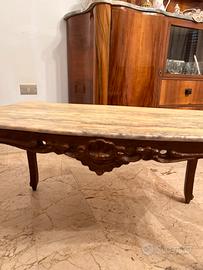 Vendesi raffinato tavolino da caffè (coffee table) d'epoca, perfetto per completare un salotto classico o come elegante piano d'appoggio in un ingresso. Il mobile si distingue per la qualità dei materiali e la sinuosità delle sue linee.