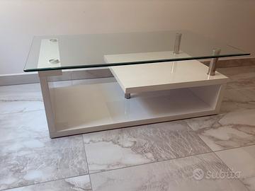 Tavolino da salotto con piano in Vetro temperato… colore struttura bianco laccato …design moderno