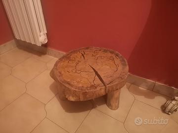 Tavolino da salotto pirografato planisfero. legno massello,fatto con tronco di albero.