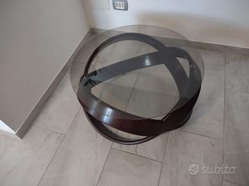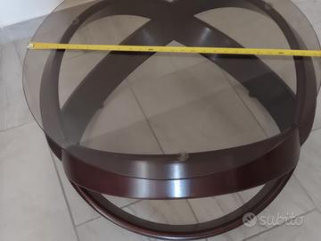 Veramente bello tavolino in mogano tondo con vetro bronzato molato vintage fine anni '80, euro 55, non spedisco
