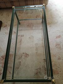 delizioso tavolino in metallo verde e vetro, doppio ripiano, con borchie ottonate sugli spigoli, misure 120x60. lampada coordinata con doppia luce. Usati pochissimo. Vendibili anche singolarmente, 100€ tavolino e 50€ lampada