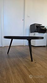 Tavolino da salotto / coffee table rotondo nero, diametro 78 cm x altezza 39 cm. Struttura in mdf laccato e piedi in legno. Nel top è appoggiata una lastra in gres effetto marmo Laminam Noir Desir opaca, tagliata su misura. Questa non assorbe ed è molto resistente agli urti, essendo accoppiata nel lato non visibile ad una rete in fibra di vetro. Tavolino molto elegante, perfetto per ambienti moderni e minimal.