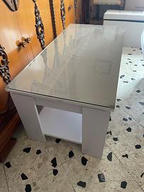 Vendesi tavolino da salotto bianco con base in vetro e vano contenitore porta oggetti. Lunghezza 101 Larghezza 50 Altezza 44