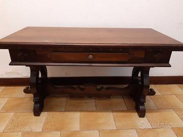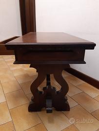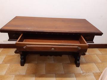 Tavolino rettangolare in legno di noce massiccio con cassetto incorporato