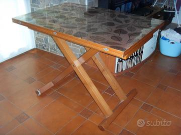 Possibilità di alzarlo (vedi altre foto), e di aprilo per farlo diventare un tavolo da pranzo per 8 persone comode.