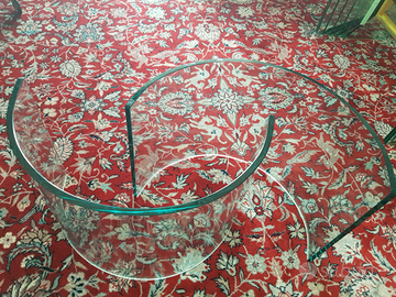 Tavolino da salotto in cristallo ovale moderno GALLOTTI&RADICE lunghezza 130cm, larghezza 75cm, altezza 38 cm, la base e in cristallo composta da 2 pezzi semi tonde si puo posizionare a piacimento