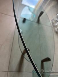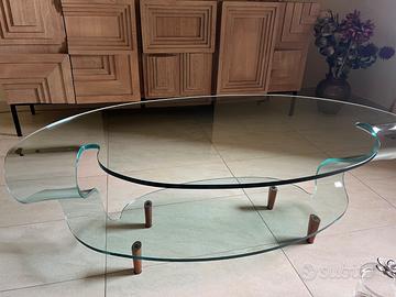 Tavolino in cristallo con piedi in legno . Acquistato negli anni ‘90 Marca FIAM Leggero difetto sul cristallo Misure H 45 L 120 P 60 ripiano sopra / 40 cm ripiano sotto H piedini 10 cm