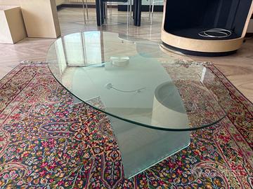 Tavolino per salotto in vetro e cristallo. Linee tondeggianti e asimmetriche per un design semplice ma elegante. Dimensioni LxLaxH 120x70x40 cm. Ritiro sul posto.