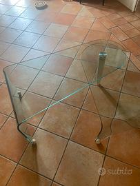 Tavolino da salotto in cristallo temperato, adatto ad ambienti sia classici che piu moderni. Si compone di 2 parti in cristallo che girano , dando la possibilità di comporlo unito o in 2 parti , nagari se ci sono 2 divani. Misure H 42 L1 95 L2 70