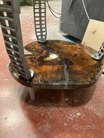 Tavolino da salotto in legno resina e fusioni