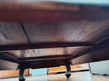 Vendo elegante tavolino da salotto in legno, colore scuro, stile classico.Struttura solida e resistente, ideale per soggiorno o sala relax. Il tavolino presenta alcuni segni di usura superficiali sul piano (visibili in foto), ma è perfettamente stabile e funzionale.