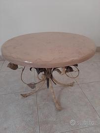 Tavolino in marmo di trani con base d'appoggio di ferro battuto in arte fiorentina.Lavorazioe al bordo in toro,piano del marmo lucido.