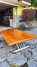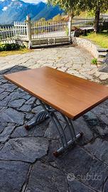 Tavolino da salotto in noce con meccanismo idraulico. Grazie alla leva integrata, il piano può essere sollevato con facilità. Inoltre, il tavolo è allungabile e può ospitare comodamente fino a 8 persone.