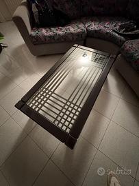 Vendo elegante tavolino da salotto con piano in vetro temperato decorato e struttura in legno color wengé.