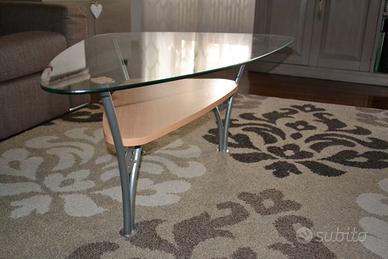 Tavolino da salotto in vetro e metallo. Dimensioni circa 120 cm per circa 65 cm e 45 cm di altezza. Il vetro è appoggiato alla struttura di metallo, facile da trasportare. Solo ritiro ad Arco (Tn) sul Lago di Garda, grazie.