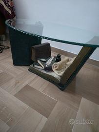 Prezzo trattabile. Elegante tavolino da salotto con piano in vetro temperato e base in resina decorata a mano, che riproduce una composizione di libri antichi, pergamena, piuma e calamaio che richiamano il musicista Johann Sebastian Bach. In ottime condizioni e ideale come pezzo d’arredo originale e raffinato. Tuttavia, la parte in vetro presenta una ammaccatura come si vede in foto.