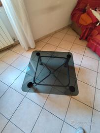 Moderno ed elegante tavolino da salotto con piano in vetro temperato fumé e gambe in metallo cromato. Il design essenziale con angoli stondati lo rende perfetto per ambienti moderni, minimal o anche vintage.