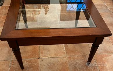 Tavolino da salotto quadrato in legno con vetro centrale. Misure 80x80 No spedizione ma ritiro in loco