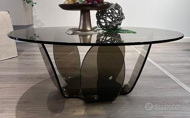 Tavolino da salotto in vetro fumè, diametro 90 cm ed altezza 35 cm .