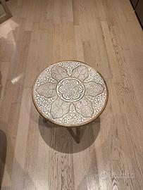 Tavolino in legno con decorazione intagliata mandala Diametro 45 cm circa Altezza 45 cm Ritiro a carico dell’acquirente