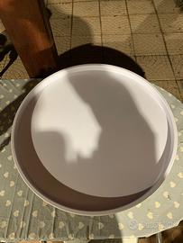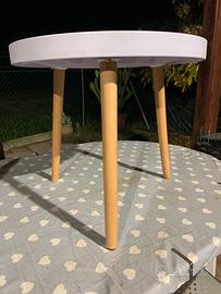Tavolino tre piedi da salotto, piano rotondo circonferenza 50cm con bordo rialzato. Altezza 45cm. Acquistato su Deghi