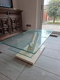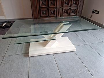Vendo splendido tavolino da salotto dal design moderno e raffinato, ideale per arredare soggiorno o sala con stile contemporaneo. Realizzato con doppio ripiano in vetro temperato e struttura centrale solida con base laccata bianca lucida. Molto scenografico ma anche pratico grazie al secondo ripiano inferiore utile per riviste, telecomandi o oggetti decorativi. Dimensioni: Lunghezza: 110 cm Larghezza: 60 cm Altezza: 40 cm Condizioni: ottime, ben tenuto, come da foto. Prezzo: 150 € Ritiro a mano preferibile. Contattami per informazioni o per visionarlo.