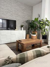 Tavolino da salotto in melanina rovere, misure 110x60 altezza 45cm, tutto perfetto tranne un piccolo difetto nella parte bassa di una gamba del tavolo, vedi ultima foto, prezzo un po’ trattabile