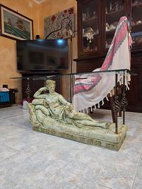 Tavolino da salotto raffigurante Giuseppina Bonaparte in polvere di marmo.Compreso di vetro di 1,10 per 50 cm. Ottimo stato.Consegna a mano .