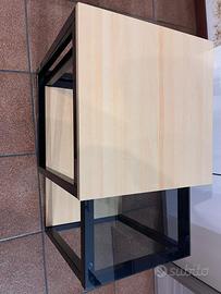 Vendo tavolino da salotto in vetro e legno con struttura di metallo, sono ad incasso uno dentro l’altro; il piu alto in legno misura 40x40x 60 cm circa; il piu basso in vetro misura 50x34,5x43,5 cm circa, perfetto come poggia vivande fianco divano. Presenta un piccolo graffietto sul vetro che si nota solo in controluce con mano sotto, tolta la mano sparisce anche col contrasto (vedi foto), già smontato. Preferibilmente consegna a mano