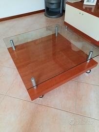 Vendo tavolino da salotto in ciliegio con ripiano in vetro. Dimensioni 100x100 Solo consegna diretta, no spedizione Prezzo trattabile
