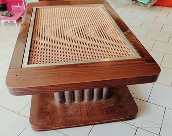 Tavolino fine anni '70 in CASTAGNO e PAGLIA DI VIENNA . Molto difficile da trovare.