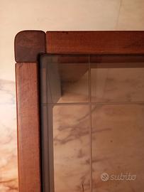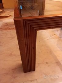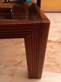 Elegante tavolino da salotto, quadrato, con struttura il legno massello ( noce) , e piano in vetro fume'. Stile classico, che si armonizza in molte tipologie di arredo. Misure :lato cm 75 x cm 75 , alto cm 37. Ottime condizioni. Si trova a Milano città. RITIRO E TRASPORTO A CARICO DELL'ACQUIRENTE.