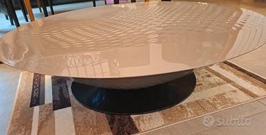 stupendo tavolino basso forma conica. il piede color nero è un po scorticato. la parte superiore perfette condizioni color tortora / cemento. elegante e particolare come i prodotti roche bobois