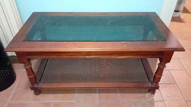 Vendo tavolino da salotto in legno massiccio con ripiano in vetro e sotto-ripiano. Tel. 3483890050