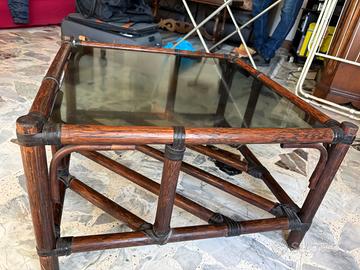 Tavolino da salotto in bambù marrone e con il piano in vetro. Misure cm 63 x 63 x altezza 36,5 No spedizione, solo ritiro in loco