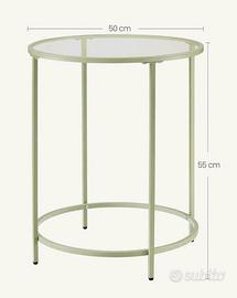 tavolino da salotto con ripiano in vetro e base in acciaio colore verde oliva. nuovo in scatola.