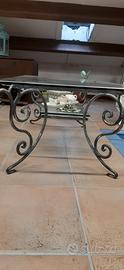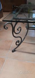 Vendo tavolino da salotto in ferro battuto pezzo unico fatto a mano color nero canna di fucile con doppio vetro in due ripiani. misure: 106x57 cm. spessore dei vetri 1 cm. in perfette condizioni.