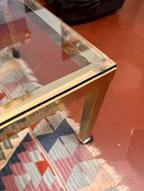 Tavolo basso da salotto, piano in vetro e telaio metallo color oro. Misure 140x75 Ho montato delle ruote per comodità ma sono removibili