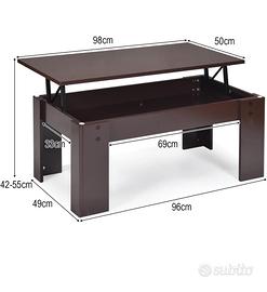 Tavolino da Salotto, Tavolino Sollevabile, Moderno, Basso, in Legno, Vano Portaoggetti, per Soggiorno, Ufficio, ecc misure 98x50x42-55 cm, Marrone ancora imballato, venduto a brevi mani