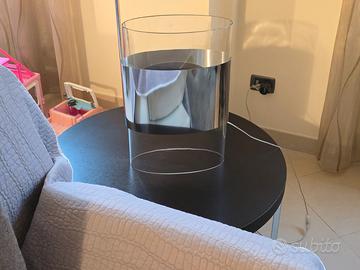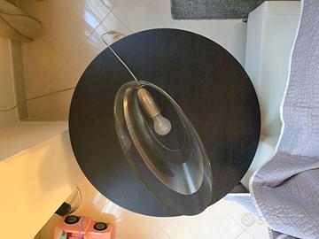 Vendo tavolino da soggiorno in ottime condizioni in legno color wenge'/testa di moro dal diametro di 85 cm con supporti in acciaio inox e vendo inoltro anche separatamente la lampada in vetro temperato e acciaio anch'essa in ottime condizioni. Euro 150 il tavolino e 100 euro la lampada.
