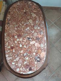 tavolino basso stile liberty anni 90, alto 40 cm e lungo 1 MT adatto a soggiorno, legno massello e marmo ottime condizioni