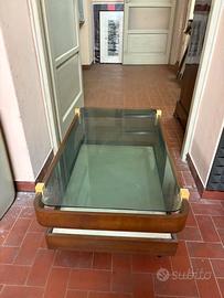 Tavolino da soggiorno, stile modernariato in legno con piano in vetro. Misure 90x50 h 35