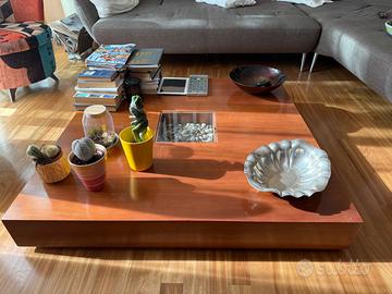 Tavolino da soggiorno pezzo unico realizzato da falegname su disegno di architetto misure 120 x 120 x 18 Legno ciliegio