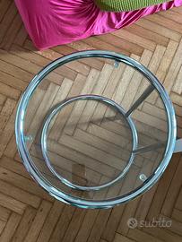 Tavolino da solotto che si incastra nel divano. Accaio e vetro Zona loreto/piola H53 Diametro 44
