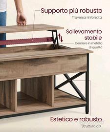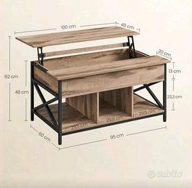 Può essere utilizzato come tavolinetto da tè in un soggiorno o, avendo un piano elevabile, è comodo anche come tavolino da pranzo e contenitore porta oggetti.