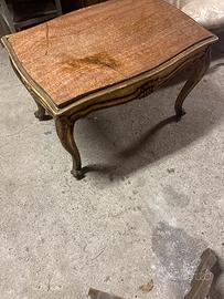 Tavolino in legno dorato com marmo misure 83x55altazza 55,marmo rotto